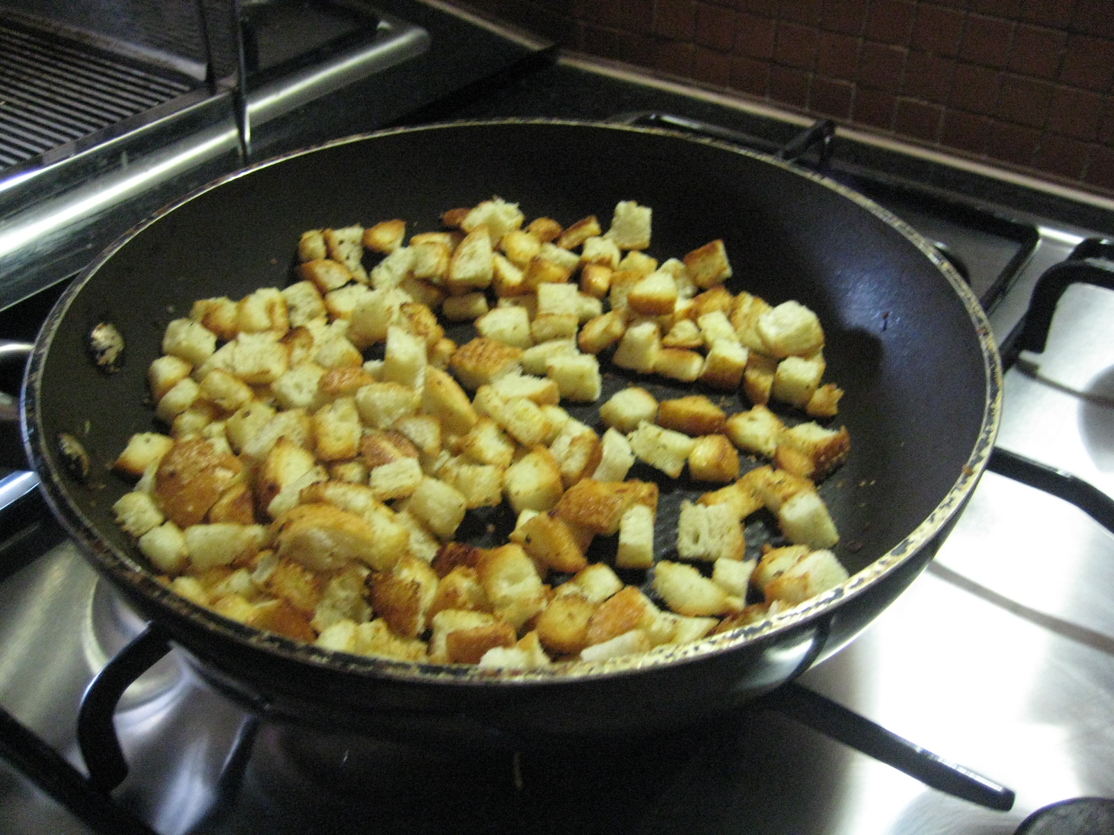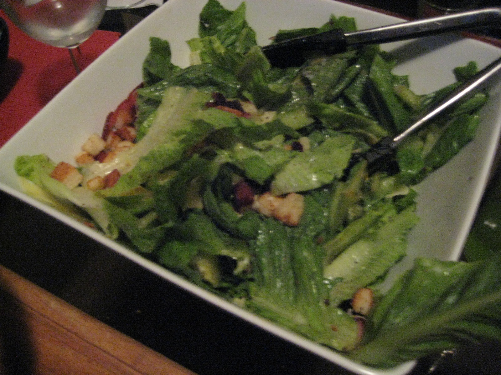 And we add those to shaved parmesan.Then fried bacon and some coddled eggs with runny yolks. A few flimsy leaves of Cos lettuce.