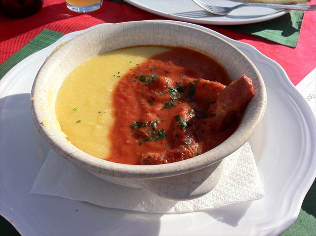 My time is best spent huddling over a speciality of polenta with sausages and sugo that’s as comforting as some time with a lap rug and old episodes of The West Wing. The polenta is slippery and plain, the sugo slightly sloppy and sweet.