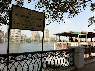 There is a sound track of Coldplay, house music and collective exuberance. We eat plates of mezze; babaghanoug, hommos and tehina with puffed pitas as pliable as down. In front of us is a 270 degree view of the Nile. In the bathrooms I meet two young women from Toronto who have just returned to their family’s home Cairo. I ask them why. They say they felt like they had to be here at this time.