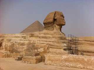 At the sphinx there are youngsters hawking wooden replicas and cascading piles of post cards.