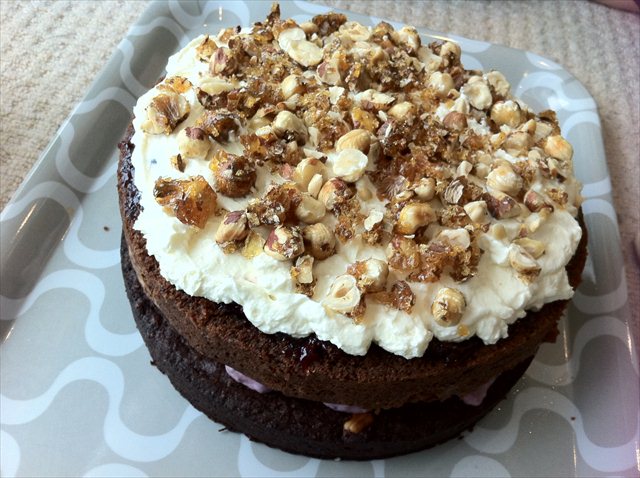Layer three was half of the chocolate sponge (recipe below)