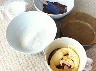 4. Sieve the flour, baking powder and cocoa powder together into another bowl.