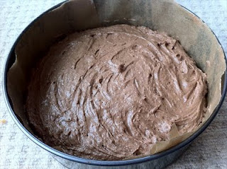 9. Gently spread the combined batter over the base of the tin and level with a spatula.