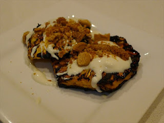Just before serving we drizzled the burnished fruit with half a cup of sour cream, half a cup of cream cheese and half a cup of yogurt muddled together with some brown sugar. It could have also been because the combination of tart and rich were exactly what the sticky, booze soaked pineapple cried for. It could have also been because that was what was languishing in tubs in the fridge.