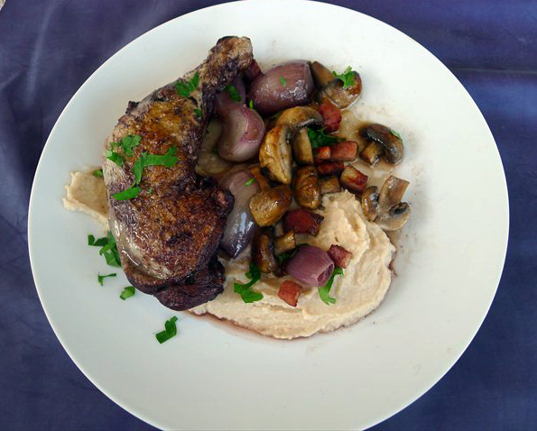 5. Serve over a puree of white beans, mashed potato or on its own with baguette pieces to dip in the sauce.