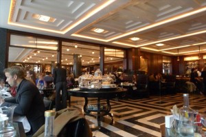Then there’s the salon. If you arrive for an early lunch, there’s usually room for walk ins in the salon. It’s half a bar, half a tea room, looking onto the main dining room. The centre piece is the cake stand. Around that are banquettes flanking the windows and cosy moss green topped marble tables that are perfectly sized for two. Note; sensible people will sit opposite each other. Visiting Europeans with differing interpretations of personal space will squeeze next to each other, facing the centre of the room and offering you an elbow with every bite of their tarte flambée.
