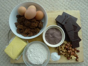 These brownies are now my ultimate and are in honour of the horse. They’re as black as pitch and rich as hell. Instead of the light trilling of white sugar, there’s only muscavado, adding a solid caramel note to the proceedings. The chocolate is minimum 70% cocoa solids- then there’s cocoa powder as well for an extra layer of intensity. For a little bit of contrast there are toasted hazlenuts and walnuts bobbing about- and on the top- there’s a little sprinkling of sea salt. Black caviar needs a little bit of salt.