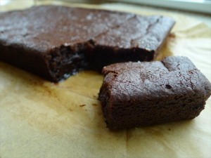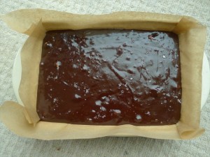 8 ) Bake for 25-30 minutes. Pull it out at 23 minutes and check with a cake stick. You want there to be a little bit of cling to the stick, but not liquid. If it is liquid, return to the oven for another two- four minutes. Keep checking and returning until you pull it out and there are some light crumbs on it (nb, if you like it to be more like a sludgy fudge, take it out when it’s still a little gooey).