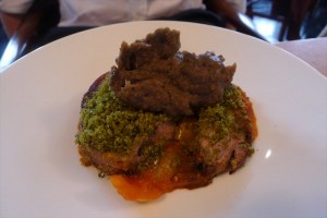 The Swan at the Globe ticks most of those boxes. Adjacent to the theatre, it’s wood panelled bistro with views out over the Thames. In winter it would be delightfully cosy. In summer, it can get a touch stifling. Up one flight of stairs is the bar, where you can have ‘British tapas’- yet you can’t book. On nights when there’s a show on by 6.30 pm it’s rammed. Upstairs from that is the restaurant, which does let you book and does a set three course menu for £26.50 per person, with three choices at each course.