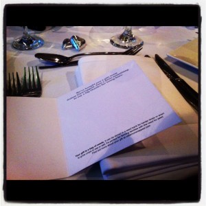 Technical details aside (Maleny being in the Queensland hinterland, not Sydney), this counts as one 0f the best things I ate down under. It could have been because of the way the pork gently splayed across a fork when you plundered it; the perfect balance of fat to flavour. It could have been because of the sweet and piquant sauce that came with it. Or it could have been because of what was on the table right before it arrived. Wedding food is hard to get right. You want it to appeal to a multitude of tastes. You want it to be forgiving for the kitchen to prep and plate. And you don’t want it to upstage the real stars of the day. In this instance, the bonbonierrie that was placed on each of the plates at the start of the meal was the sweetest reminder of some of the best attributes of the couple in question. Both the bride and groom have a ferocious sense of social justice; so instead of sugared almonds, chocolates, or picture frames, on each place there was a piece of card.
