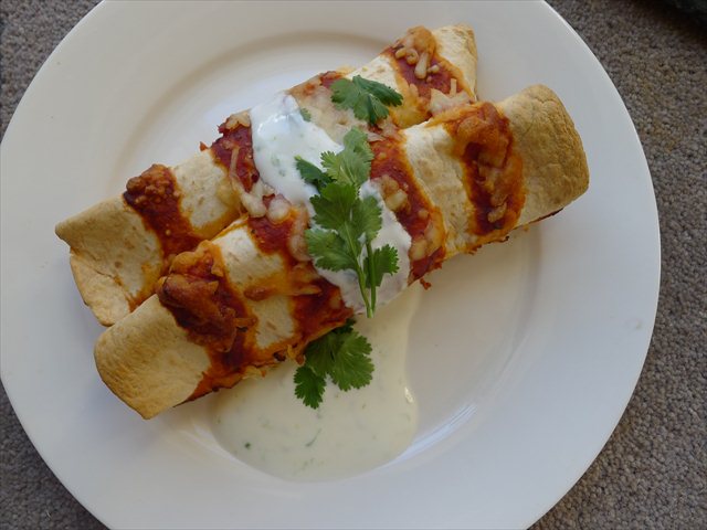 10) To make the lime crema mix together the yoghurt with the lime zest and juice. Serve alongside the enchiladas, perhaps with some guacamole and a crunchy green salad.
