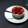 1.Upend the plastic cups, one to each plate. Puncture the top of the cups with the tip of a knife. This will allow air in and the suction seal to break, releasing the panna cottas.
