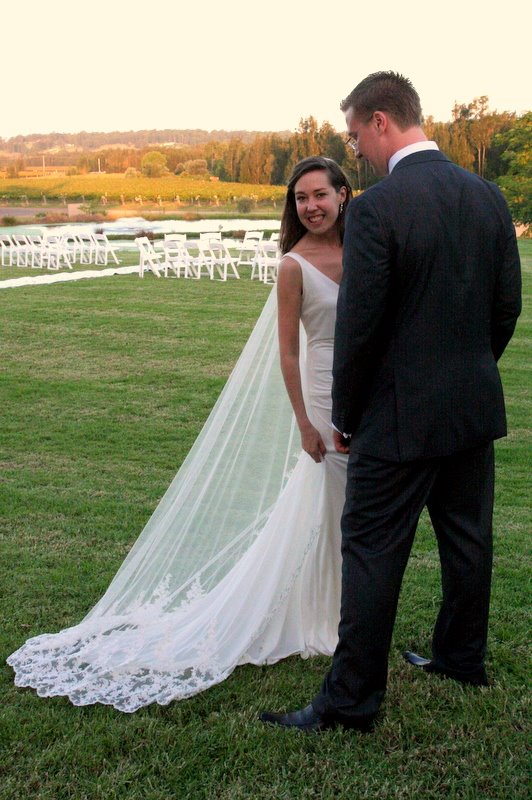 Things were going great- there were Riedel glasses that matched to the wines, we were quite partial to the 2006 Pinot Gris from the winery- so much so that we bought 3 cases of it to cellar under the stairs, just in case they couldn’t guarantee it would be available a year hence for the reception.