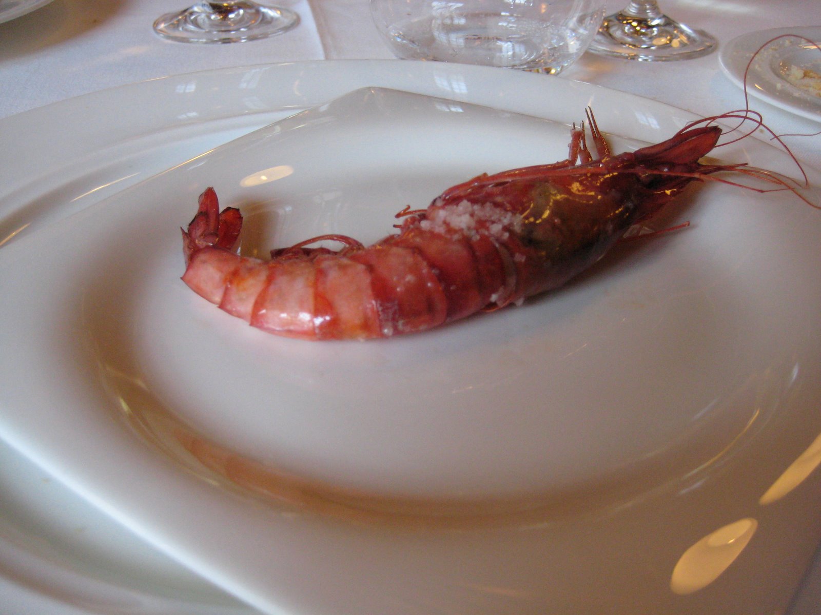 At some point we each get a fat prawn, still in its skin, perfectly seasoned and grilled. It’s up there in the twenty best things I’ve ever eaten. But like so many of the other courses there is nothing else to dress it up, hide it, or hide behind. It’s just the produce, just a prawn that’s been cooked by some fellows with serious command of fire and smoke.