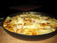 In a non stick fry pan layer the roast onion petals, capsicum strips and steamed potato slivers.