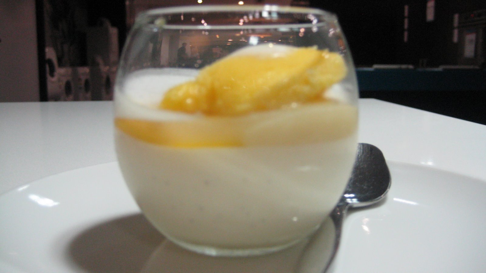 On Tuesday night the Hungry One and I went to drink champagne and see Katrina assemble a TAHITIAN VANILLA PANNA COTTA WITH WHOLE-ORANGE PURÉE, YUZU CURD, MILK