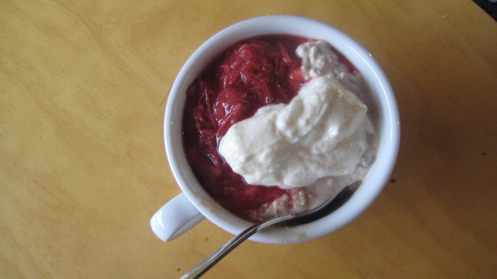 It’s squishy, comforting, topped with yogurt and a great whack of a rhubarb slurry.