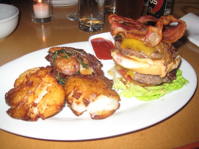 There’s a twist on a traditional burger, served inside out in a tower of organic meat, a toasted sponge of bread, cheese, tomato, caramellised onion and organic crisped bacon with a side of ‘smashed fries'($14 USD). It’s meaty, dense with a texture more like steak tartare than a mealy puck of ground protein sweet and our tastebuds adore it, even if our thighs may not.