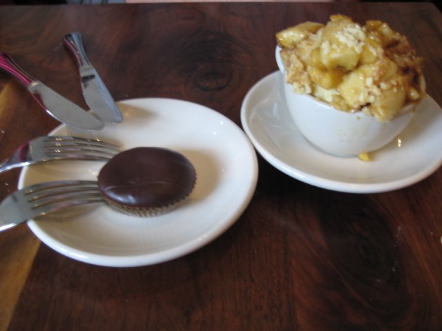 I should know better by now. There’s a double layer creme brulee. One layer is chocolate, the other vanilla. Once you’ve cracked through the thin shards of sugar and got to the bounty beneath it’s like licking flavoured silk sheets. Now that’s a revolting thought. But it was really quite wonderful.