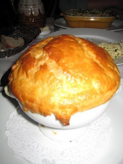 The signature dish is a cream of tomato soup; a heavy crimson lake beneath a puff pastry dome. It’s very sweet and very rich and I’m not sure we’ll be able to make dessert.