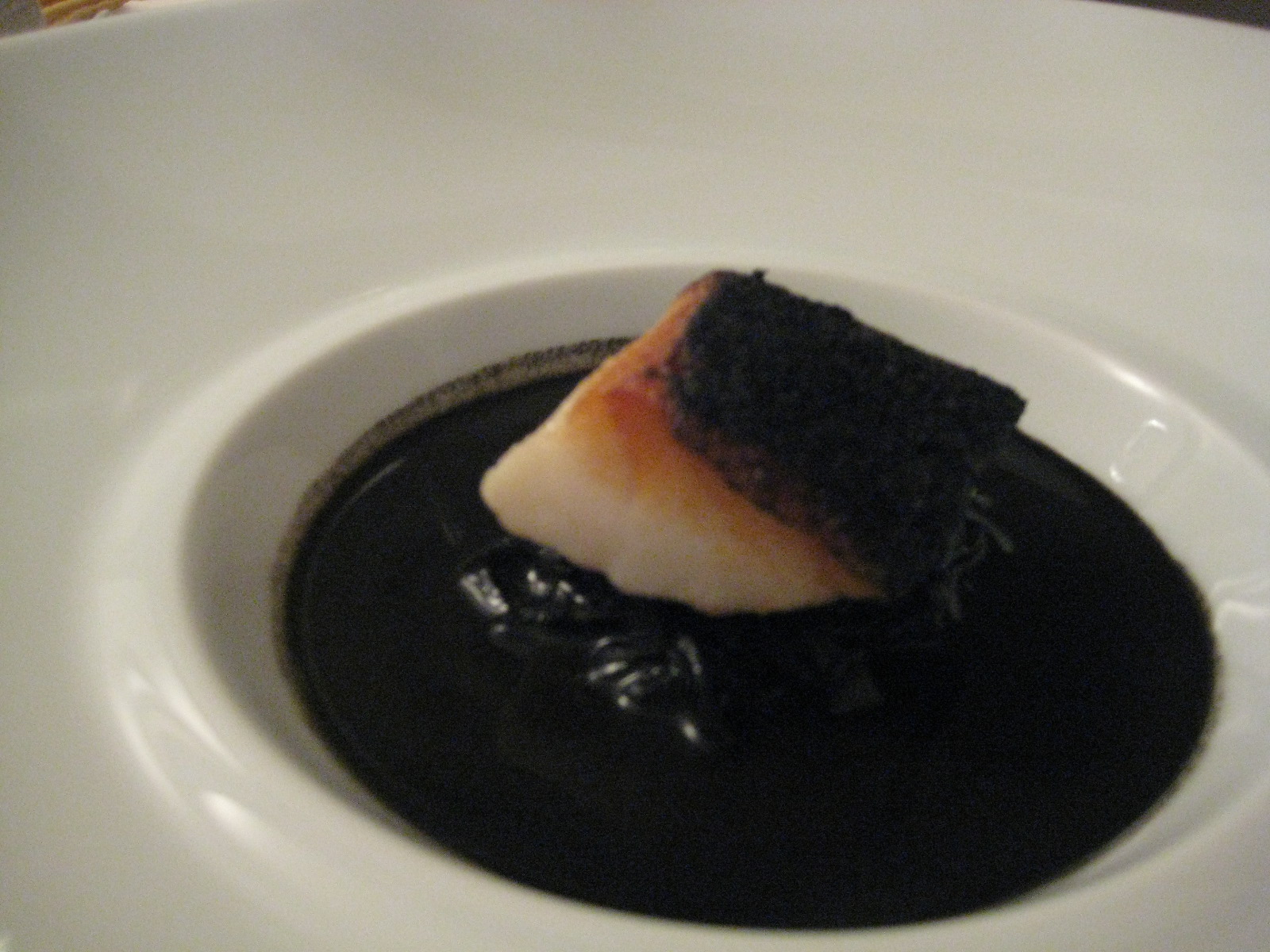 Next is a schooling in the art of risotto. The colour of gunmetal and topped with tiny pearls of caviar – the risotto is flavoured with puréed oysters, with the smell of brine and a touch of lemongrass to ‘help clean the palette’.