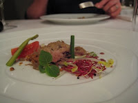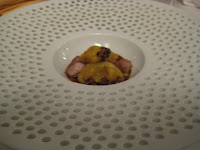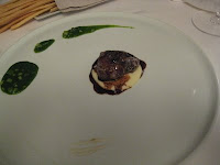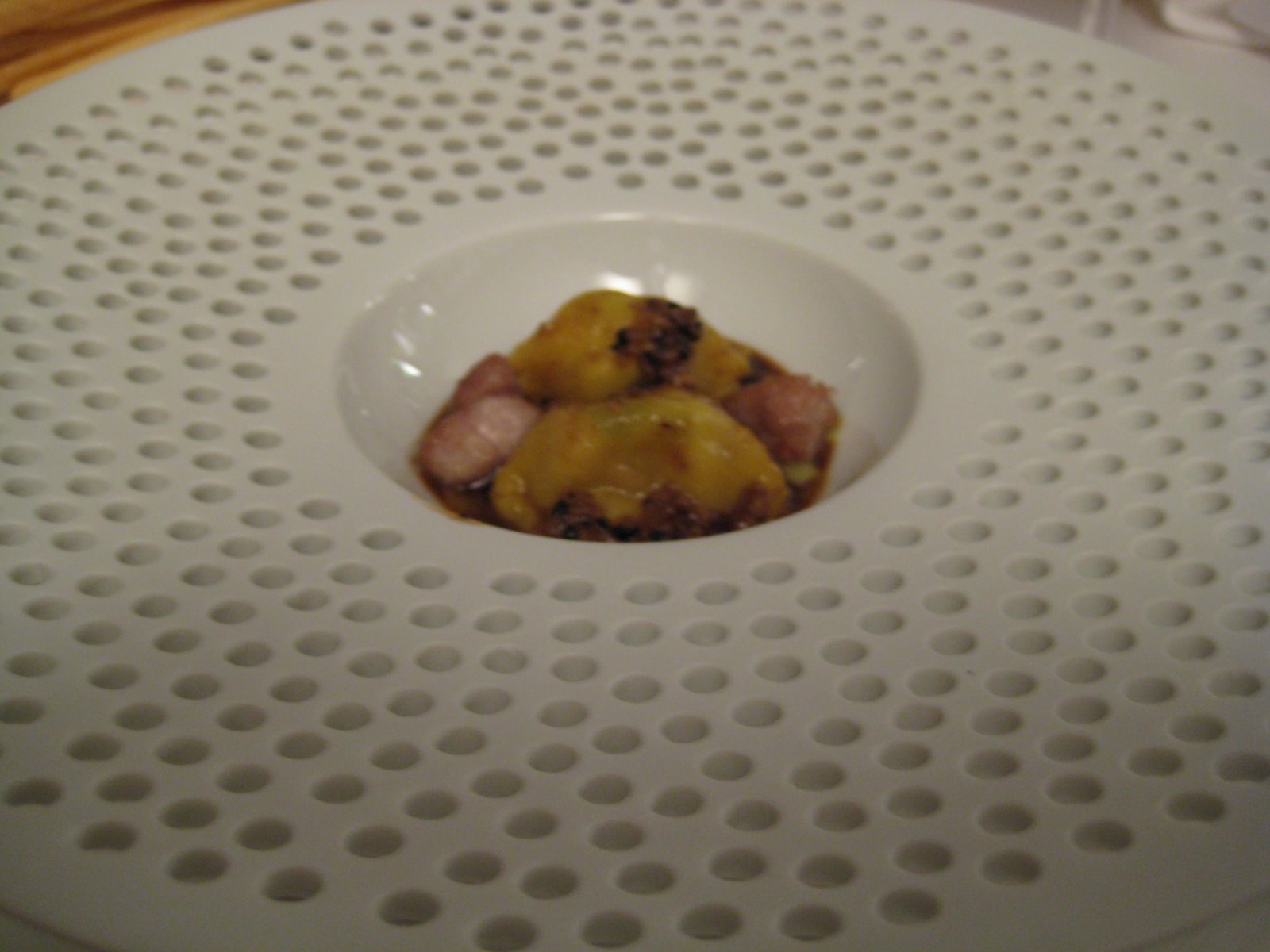 Next comes the pasta and beans, and then after that a ravioli of bone marrow and tongue with asparagus puree.