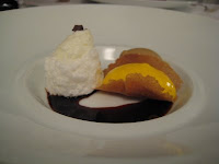 For me it’s a steamed meringue toped with marscapone sorbet, coffee syrup and mango gelato. Binding it together are little dots of the ‘mother’ of balsamic.