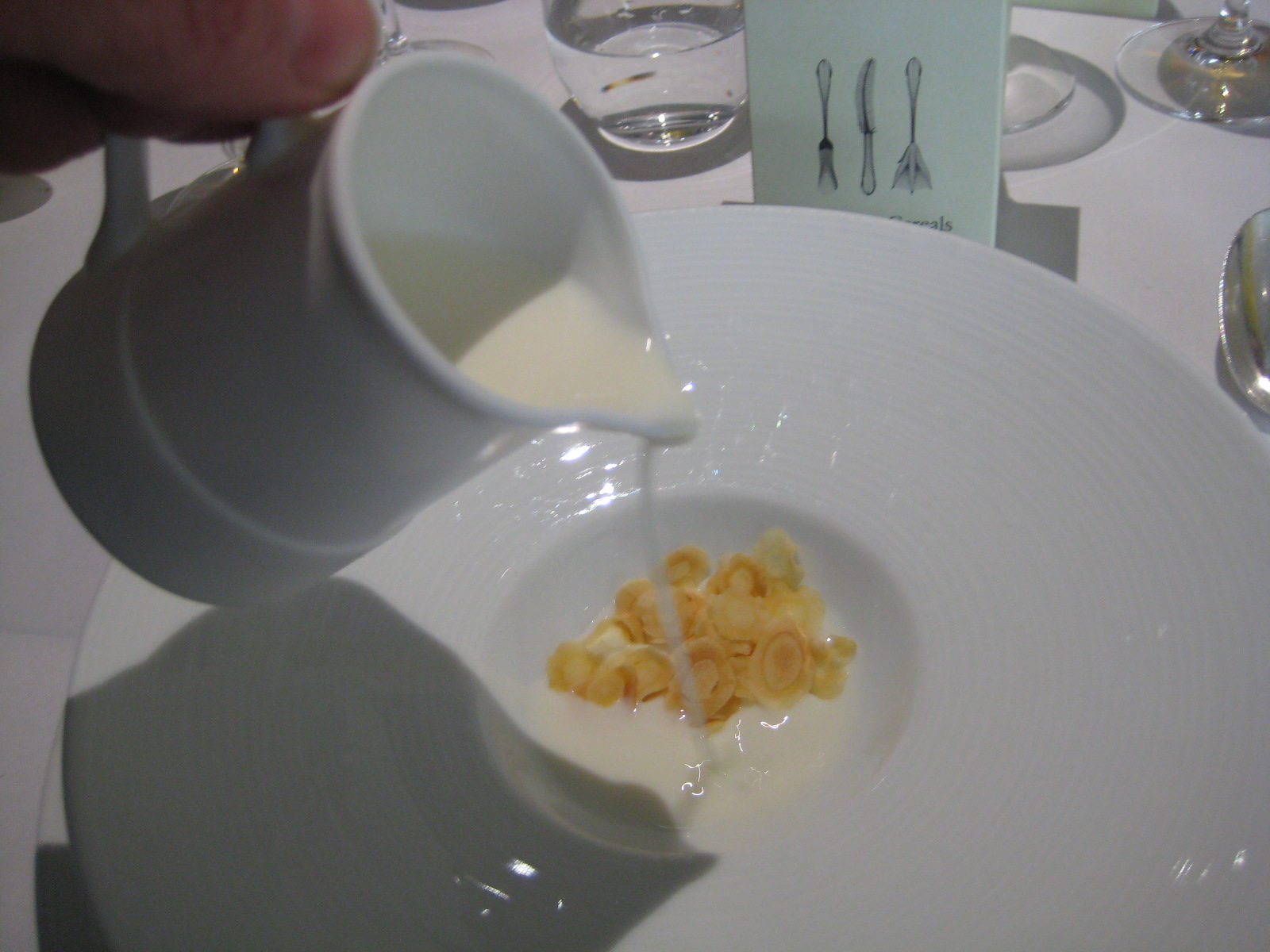Except, the flakes are made of parsnip and the milk is infused with parsley. They tell us that there are special cows out the back for that milk. I’m starting to get their sense of humour.