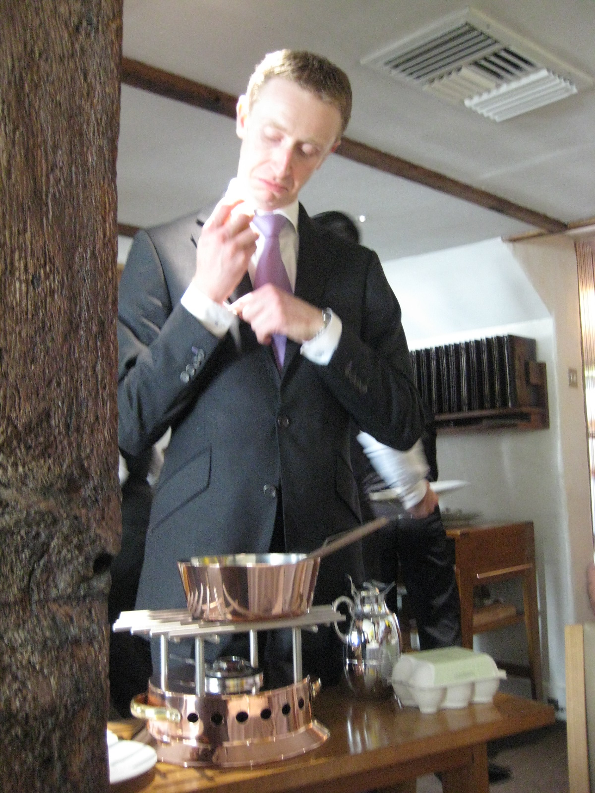 Next is bacon and eggs. With the panache of a magician the host brandishes an egg in front of each of us and says ‘Do you see anything special about this egg? No. Is just a normal egg’.