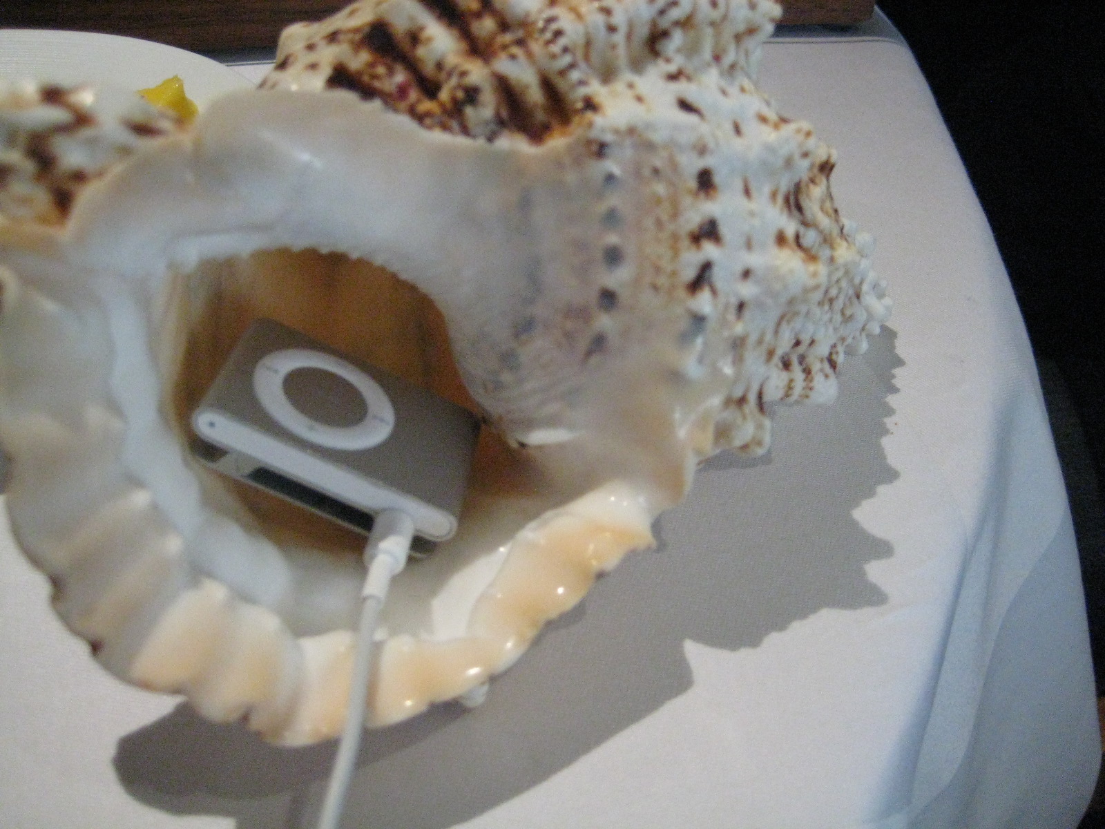 Out come some giant conch shells, with i phone earplugs protruding from within. Welcome to Fat Duck’s famed ‘the sounds of the sea’.