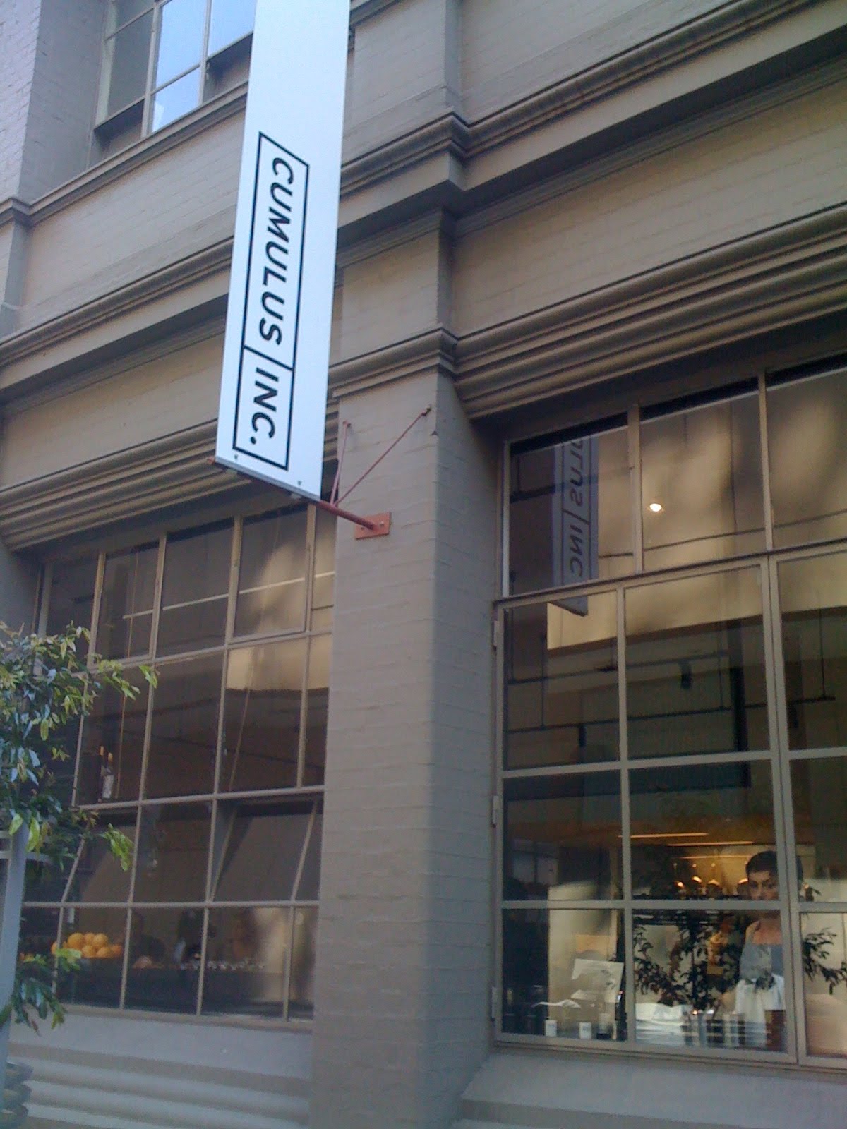 Arriving in Melbourne at 2pm on the Saturday afternoon the first thing on our agenda was keeping up the flow of carbohydrates. The second best thing about Hotel Lindrum’s location was its easy-as hop, and skip to the achingly cool Cumulus inc.