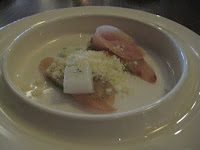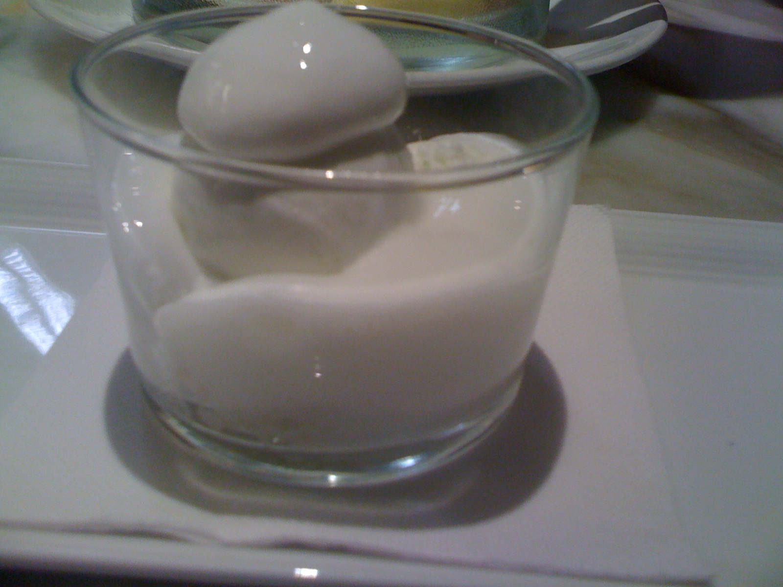 A glass tumbler houses gentle pearls of cassava root mucking in with tropical bedfellows of coconut and lime sorbet and some meringue manages to be soothing and exciting at the same time. The Hungry One tried to suggest that instead of Gatorade stations dotted around the course, a bucket of this at 32 km could be exactly what he’d need.