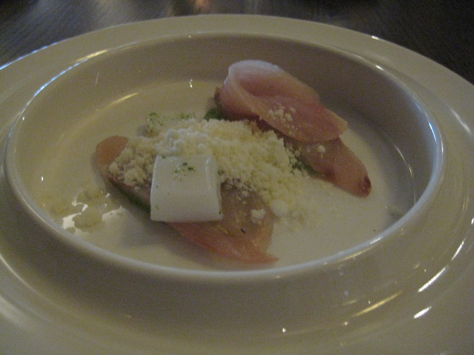 Other crackers were scallops on shoelace thin crostini with garlic custard and a dusting of smoked paprika, and wood fired quail with jamon, meaty but delicate with radishes adding a peppery punch.
