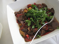 Add to that a salad of charred cauliflower, almonds, crisped flatbread chunks, labna and Earl Grey tea soaked currants, and another of wafts of asparagus, cherries and pistachios.