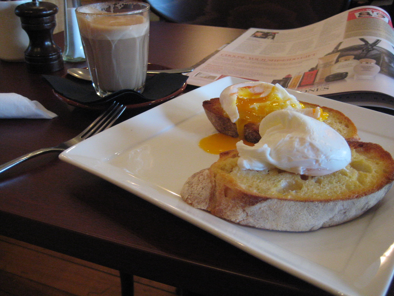 The Gourmet Larder suited us perfectly. Right on the main street within spitting distance of Daylesford’s swoon-worthy second hand bookstore. It’s perfectly cosy inside on a crisp Autumn morning, there’s Coffee Supreme from NZ, poached eggs with the right amount of ooze and enough room to spread out the paper and tut tut together over the antics of Mr Abbott.