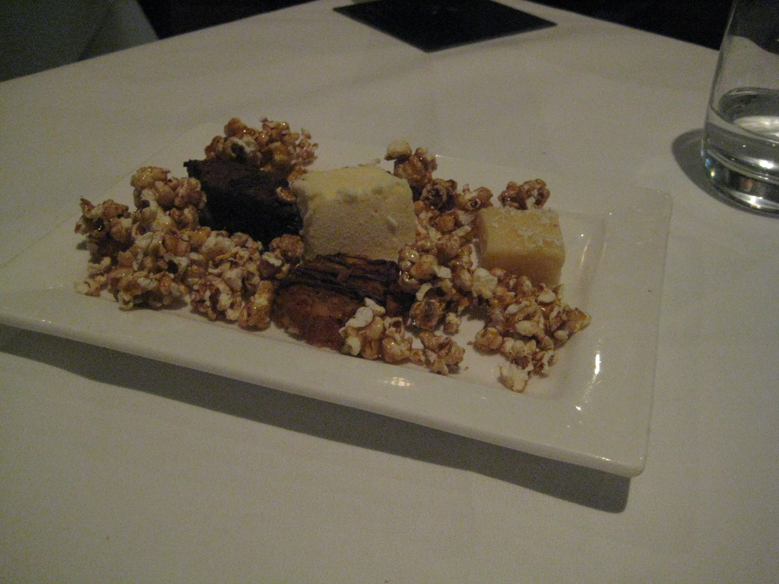 As the night dwindles and mooney looking couples meander back to their rooms we pick our way through petit fours, including spiced sweet popcorn that’s doled out from a centre repository.