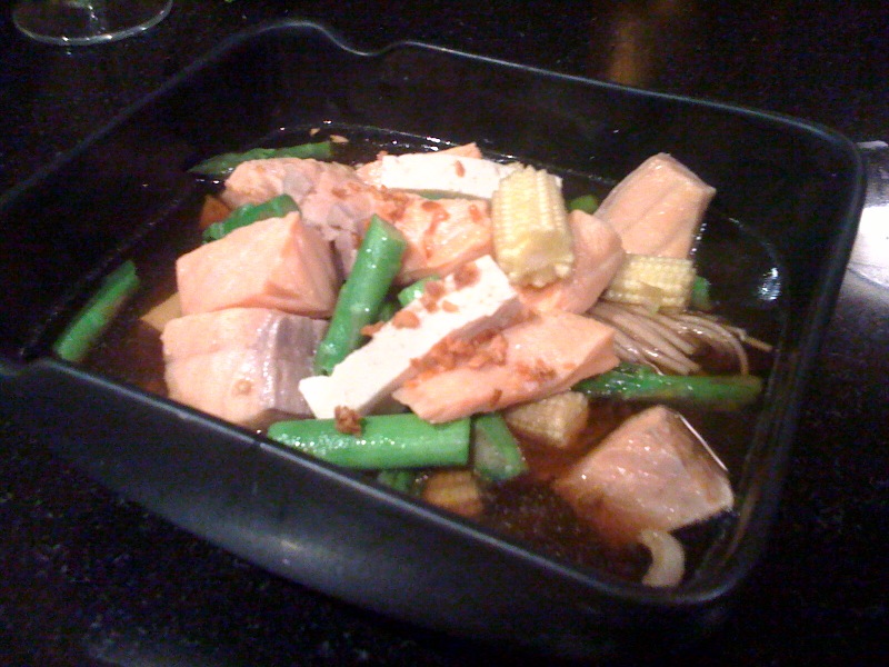 Then it’s about amassing vegetables and some sources of protein. Tofu, skinned salmon, baby corn, baby spinach, asparagus, brocollini- all of these things sometimes take a dip in the dashi bath.