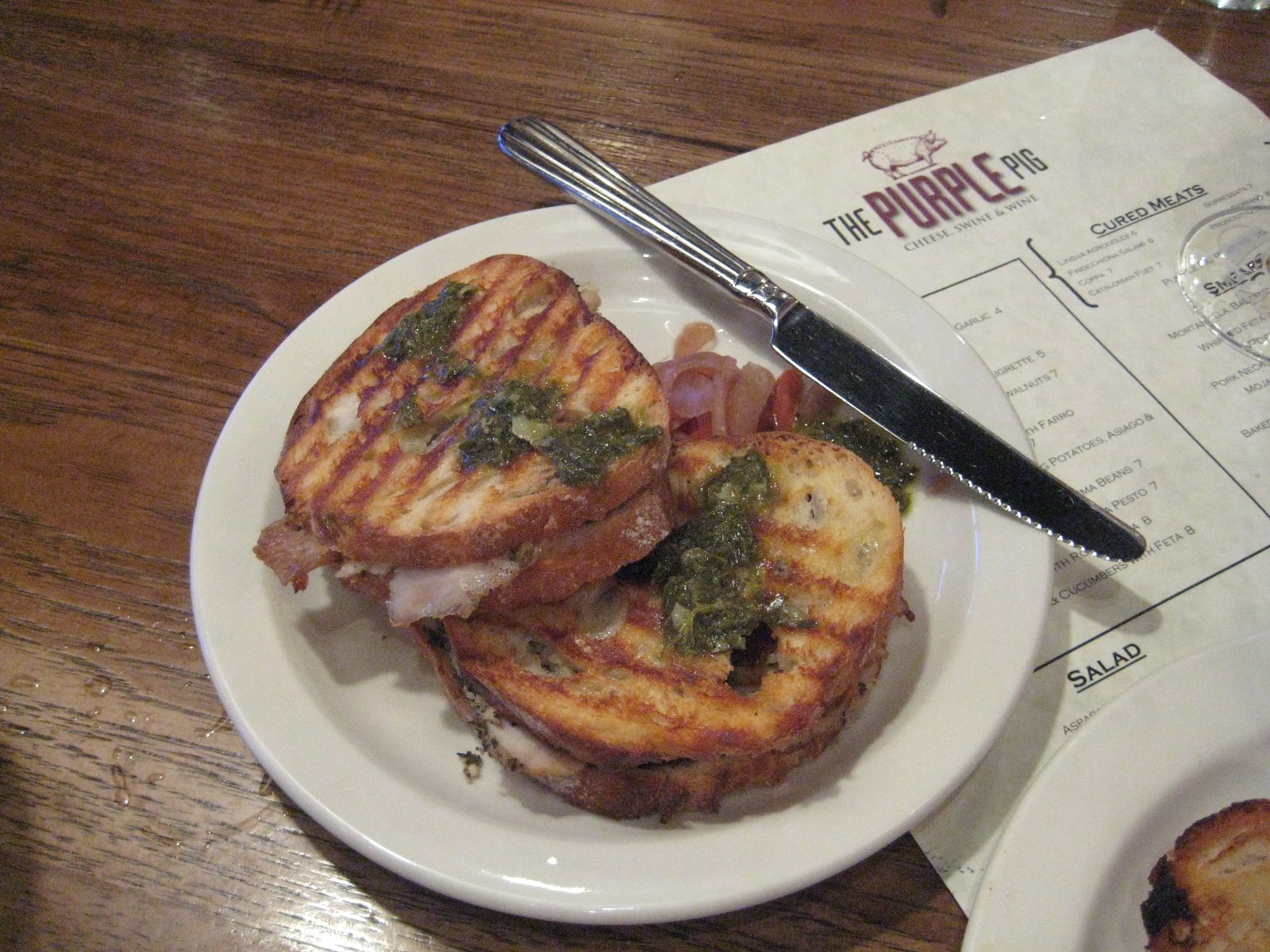 Your destination for lunch is a new entry to the food scene of Chicago. On a Friday night you won’t be able to get near the place, but if you come in the middle of the day there’s room to swing a variety of animals. Here at the Purple Pig the menu involves a celebration of the porcine- but there’s also plenty on offer for those who don’t fancy eating Miss Piggy and her friends.