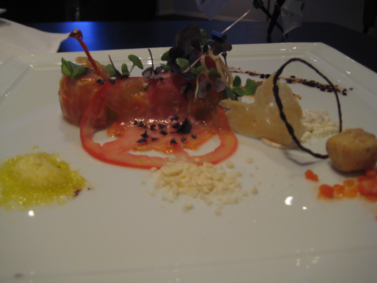 The smell of grass has a purpose. It’s there to complement a collage of tomatoes, plated like a Kandinsky. Taken together, it’s a song about summer.
