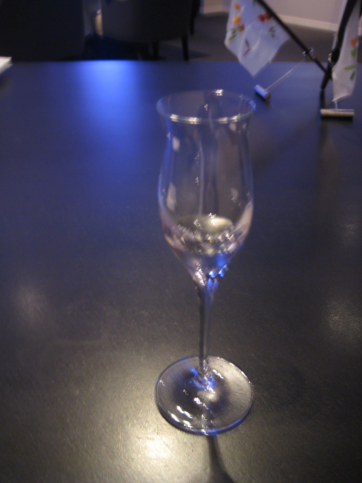 The staff are definitely part of the appeal at Alinea. Our sommelier has a touch of Sideshow Bob to him. Hair in wild corkscrew curls, unfurling from his head like the contents of a pinada. He speaks in droll tones, like there’s a punchline lurking around the corner from his every description. There’s a slightly maniacal look in his eye as he puts down two clear liquids. “This is a distillation we have made to prepare you palettes. It’s of Thai flavours; lemongrass, fish sauce and lime”.