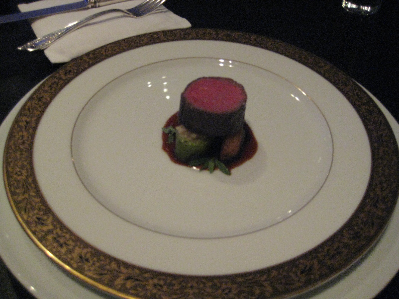 Then the plating starts to change. Out come ornate glasses and silverware- the kind your grandmother keeps for ‘specials’. Out comes an interpretation of a recipe much older than my late grandparents. It’s a combination from Escoffier.
