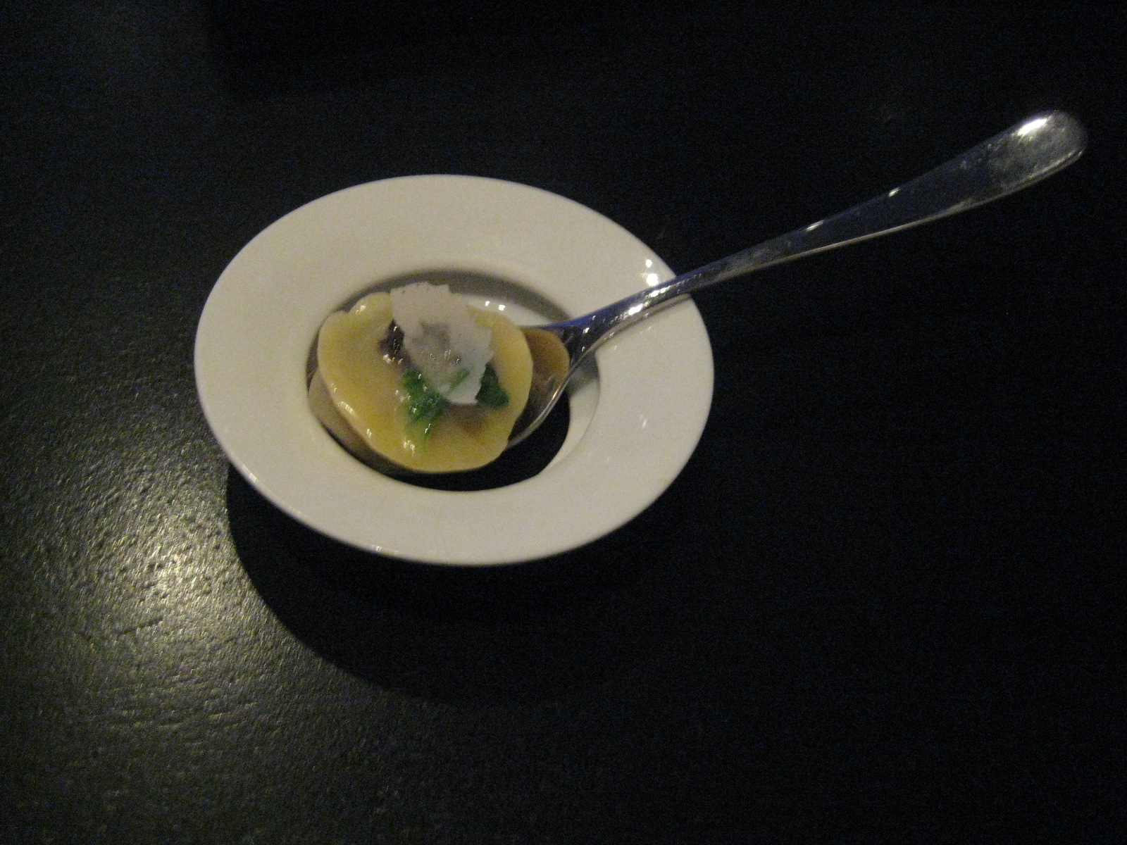 To your mouth it means a ravioli of parmesan and truffle that combusts like a soup dumpling, with tastes that play on and on.