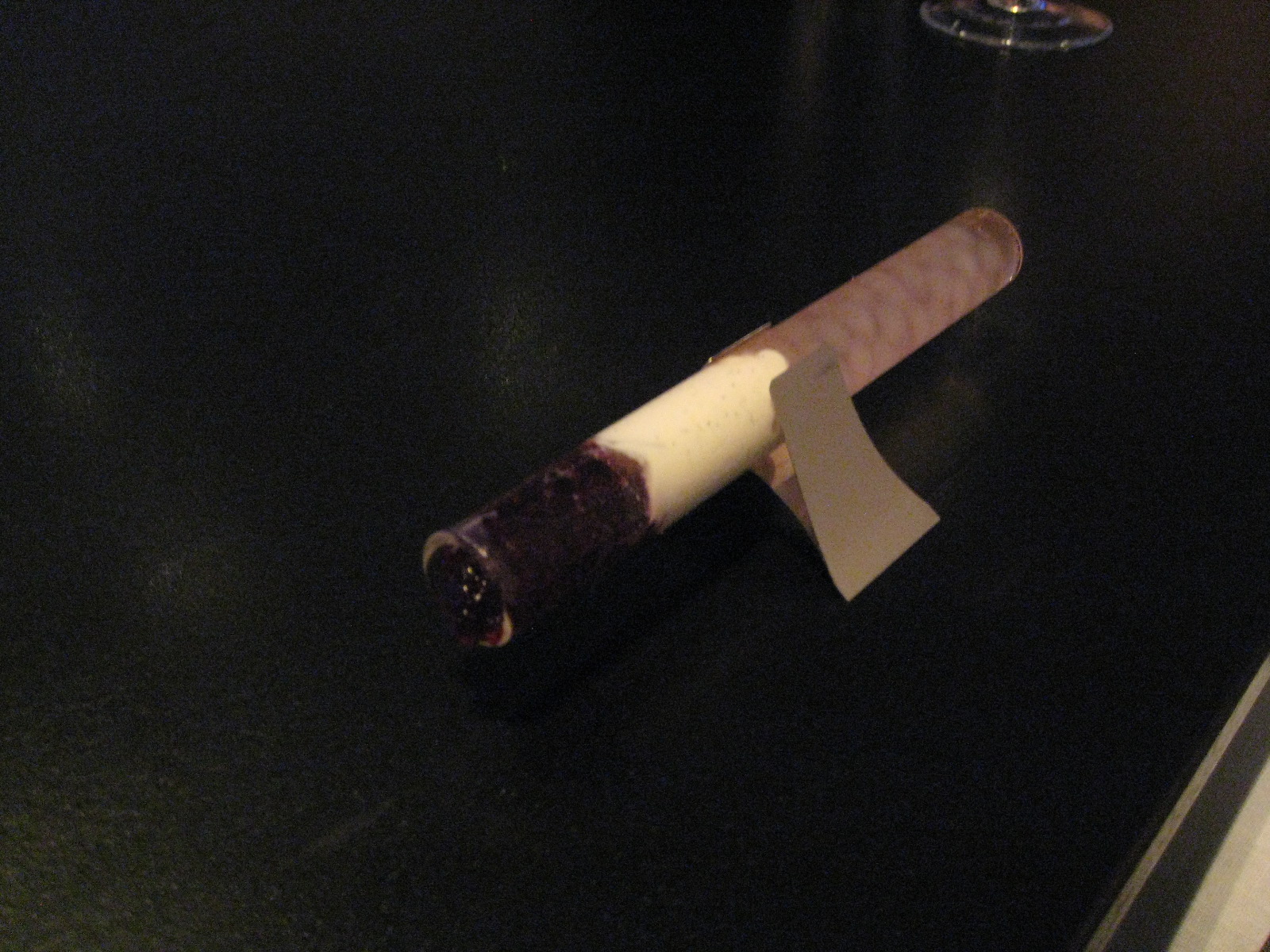 The next involves sucking hibiscus jelly, tapioca balls and vanilla creme fraiche out of a cigar. The noise it makes is rude. The volition in which the squishy balls of tapioca arrive in your mouth is slightly alarming. The flavours are a little akin to bubblegum. It’s great fun.