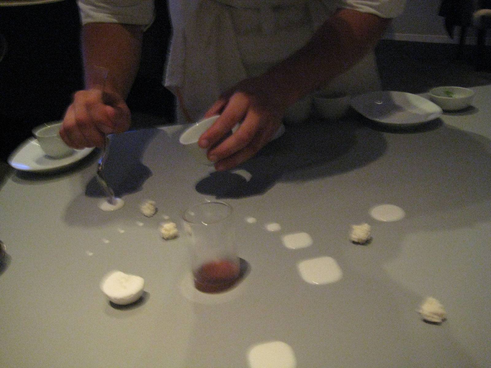 Sometimes a meal is as much about what there isn’t as what there is. At Alinea there’s no music, no menus. No bread, no ‘white fish filler course (the scourge of tasting menus, a plain fillet on a pureed vegetable that usually turns up at course 4 or 5 to fill up space). And there’s no cheese, just a series of desserts that are