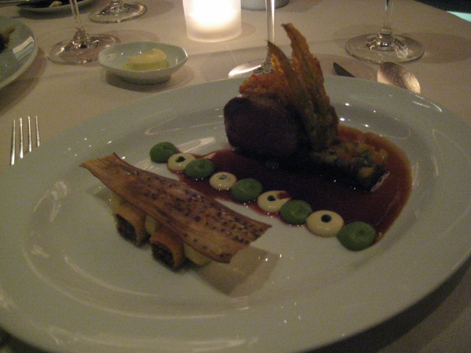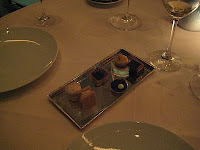 For the bulk meal there’s the option of a six course tasting menu. We choose a more pocket-friendly three course prix fixe. With it come some canny calculations. If the two of us select different options then in the end we’ll have tasted six courses. Chalk it up as a win for the impostors.