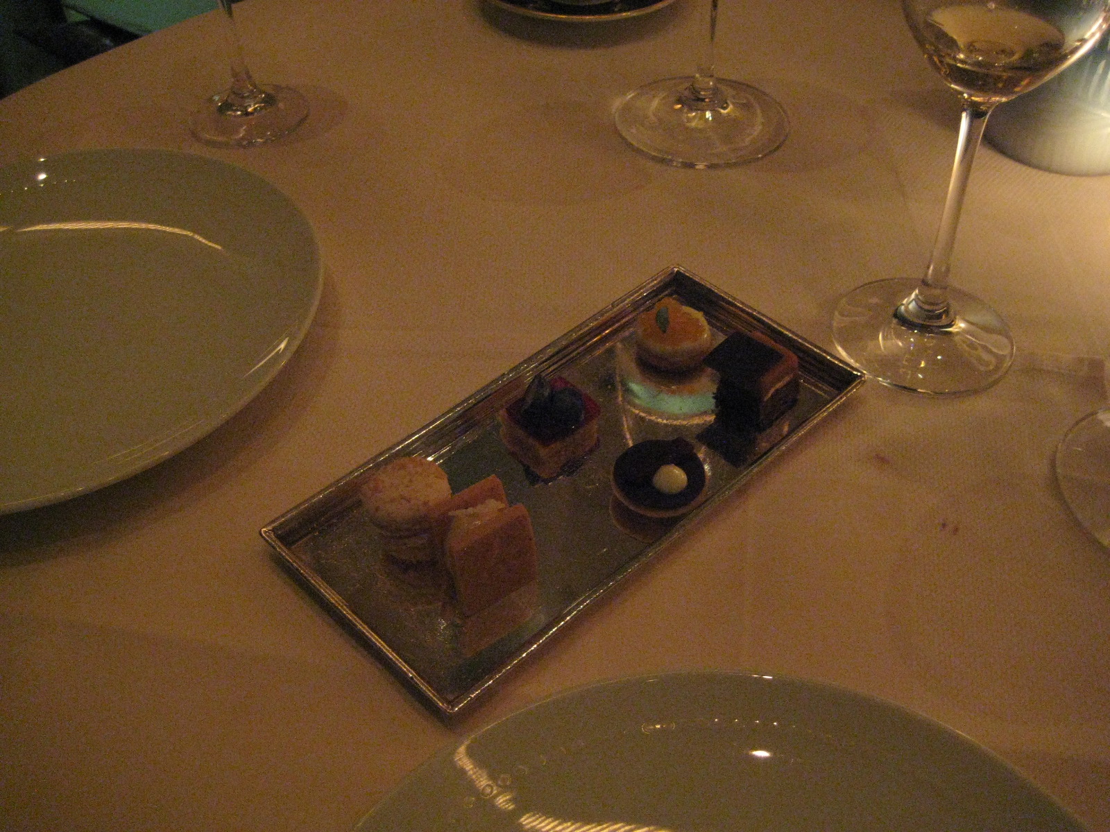 The rest of the night brings espressos that are a touch on the long side, an origami napkin encasing fresh baked madelines, warm and the size of a thimble. There are chocolates and mignardises and a tour of the kitchen.