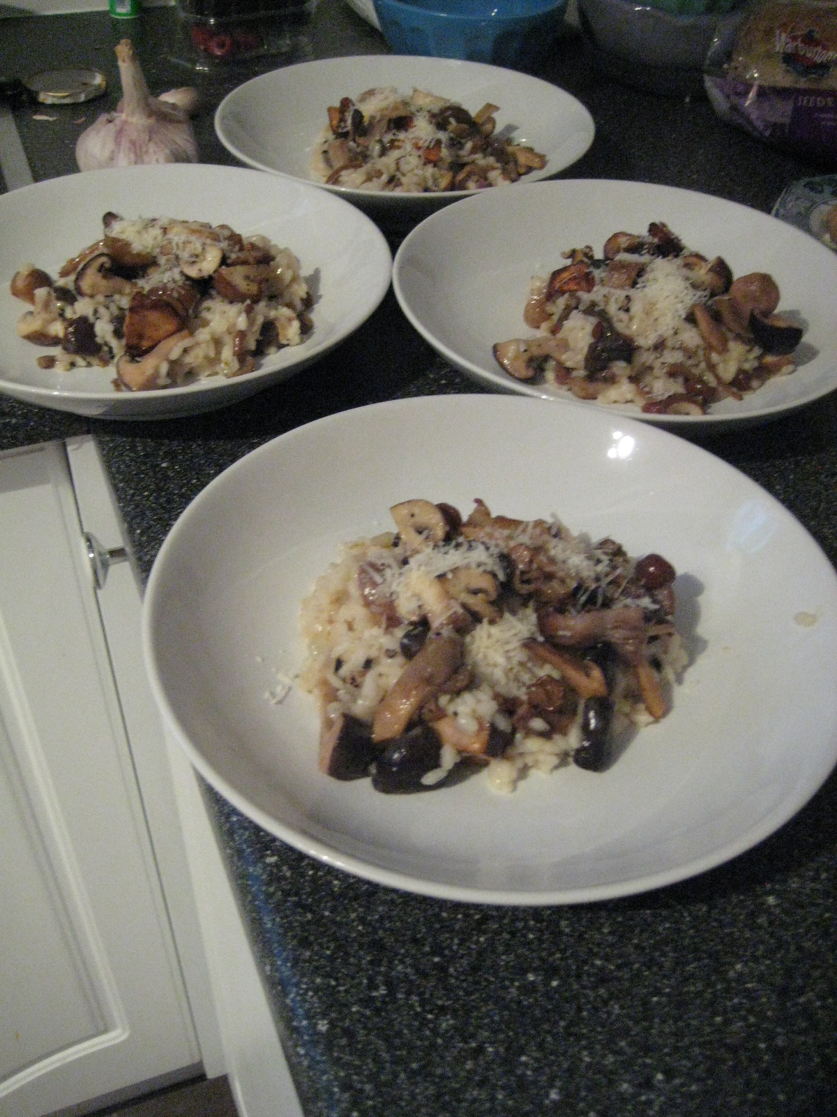 Then add the mushrooms to the rice. Add more cheese. More pepper. Maybe a touch more salt.