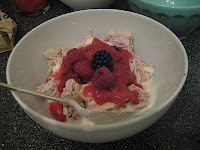 Instead of whipping cream, we went the creme fraiche route. I think it might just be the novelty factor of having creme fraiche at a sensible price at a supermarket. But then it’s also slightly tart twinge it brings, which helps cut through the silly stickiness of the meringue. Add the zest of half a lemon. If you want to lighten it further fold through a couple of egg whites that have been whipped enough so they can hold themselves up to attention.