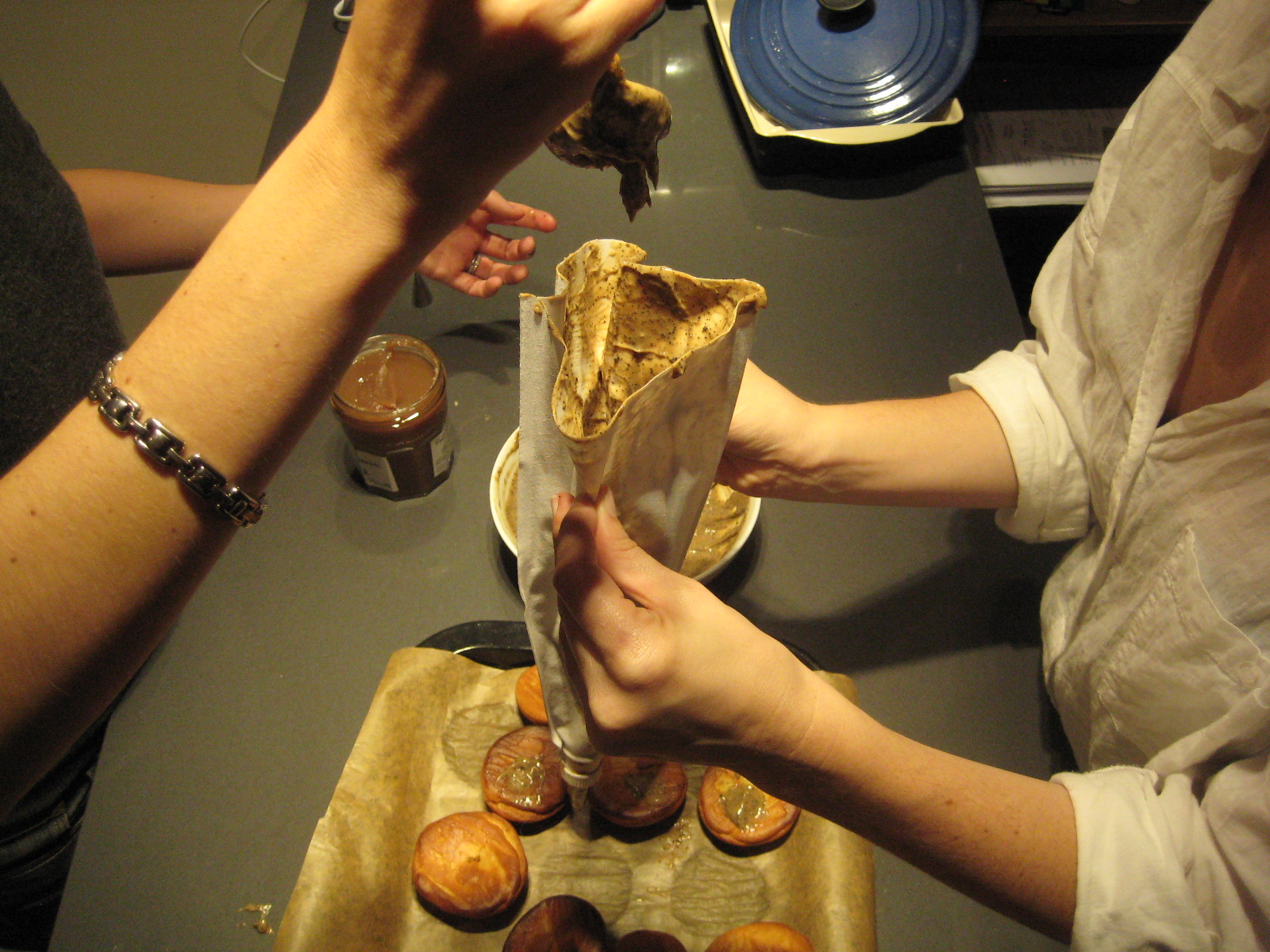 We filled ours with a creme patisserie tainted with ground coffee and topped them with my favourite souvenir from Paris. No jangly Eiffel Tower totems for me; just Bonne Maman’s chestnut jam. It’s the sleek European cousin of peanut butter or nutella. Rounded, sweet and slightly grainy, it’s also best friends with coffee.