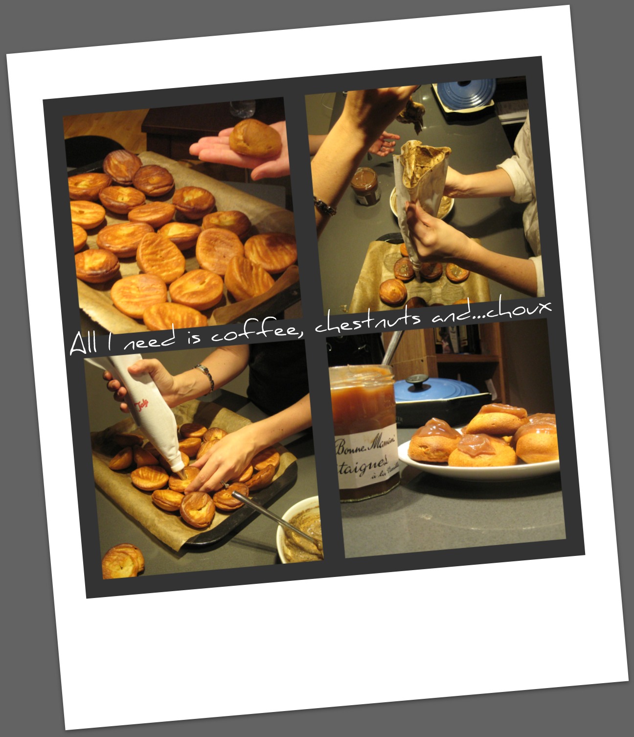 Which is why I couldn’t think of a better way to spend a Friday night than with one of my oldest friends, drinking pine wine, talking about when we’d return to Paris and making coffee and chestnut cream profiteroles.